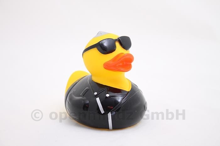 Diese Rocker Quietscheente bringt Schwung in Ihr Bad und in Ihre Werbung.
