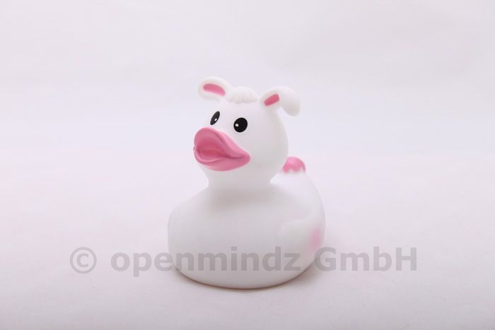 Diese süße Badeente lässt mit ihren schwarzen Knopfaugen jeden dahinfließen. Mit Karin Kaninchen brauchen Sie sich nicht in Ihrem Bau verstecken, wir drucken Ihr Firmenlogo auf die Brust und Ihre Kunden werden begeistert sein.