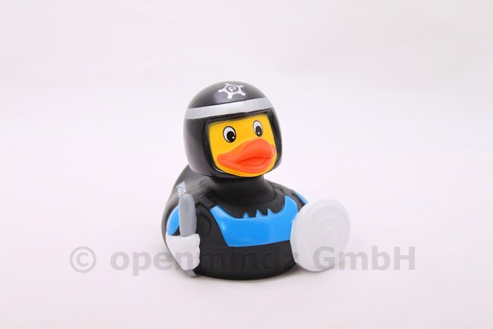 Quietscheente Erwin ist bereit für den Einsatz als Ihr Werbemittel! Ihr Logo gedruckt auf dieser Badeente und Erwin schlägt jede Werbesorge zurück.