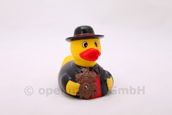 Carl Cuckoo is our original male Black Forest duck. It is a squeaky rubber duck wearing the traditional Black Forest costume.