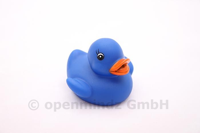 The baby duck is a blue rubber duck. It is suitable for your own logo print.